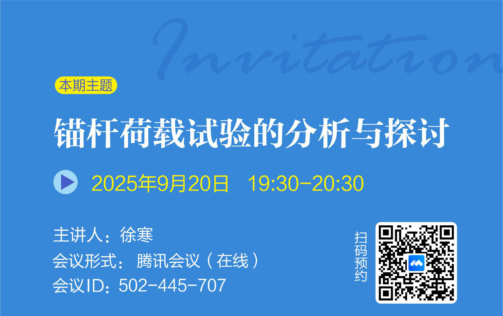 巖土錨固學苑將于2025年11月22日(周六)19:30-20:30舉辦第29期,活動以線上會議形式舉行。...