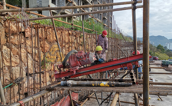 自鉆式錨桿施工技術是一種新型的錨固技術,該技術實現的關鍵是要有自鉆式錨桿施工設備,如鉆機。目前國內市場缺乏有效的自鉆式錨桿施工鉆機,針對此情況,恒諾投入大量人力財力,與業內廠家合作,經百余次應用現場調研及試驗,歷經一年時間研發出自鉆式錨桿專用鉆機,讓自鉆式錨桿施工效率更高。