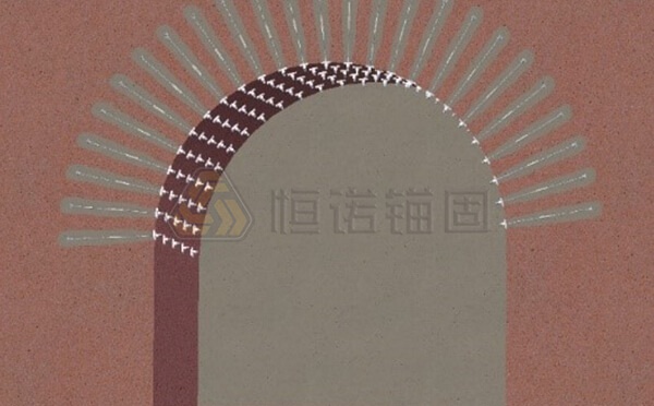 錨桿的擠壓加固作用是指其通過錨桿對圍巖施加預緊力,在巖體中形成連續的壓縮應力區,使原本松散或破碎的巖體被擠壓密實,形成具有一定承載能力的拱形或筒狀承載結構,從而提升圍巖的整體強度和自穩能力。