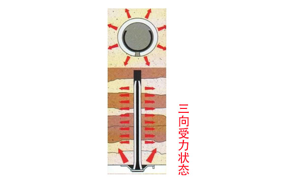 錨桿的三向受力是指在錨桿安裝完成后,通過其結構設計和與圍巖的相互作用,使圍巖處于三向受力狀態,從而提高圍巖的穩定性和承載能力。