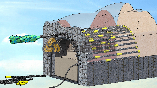 超前錨桿是一種結構簡單、應用廣泛的超前支護方法。其做法是沿隧道開挖輪廓線,將鋼筋錨桿以一定傾角打入開挖面前方的圍巖中。錨桿后端固定在穩定巖層內,前端則伸入開挖面區,從而預先對圍巖形成支護作用。